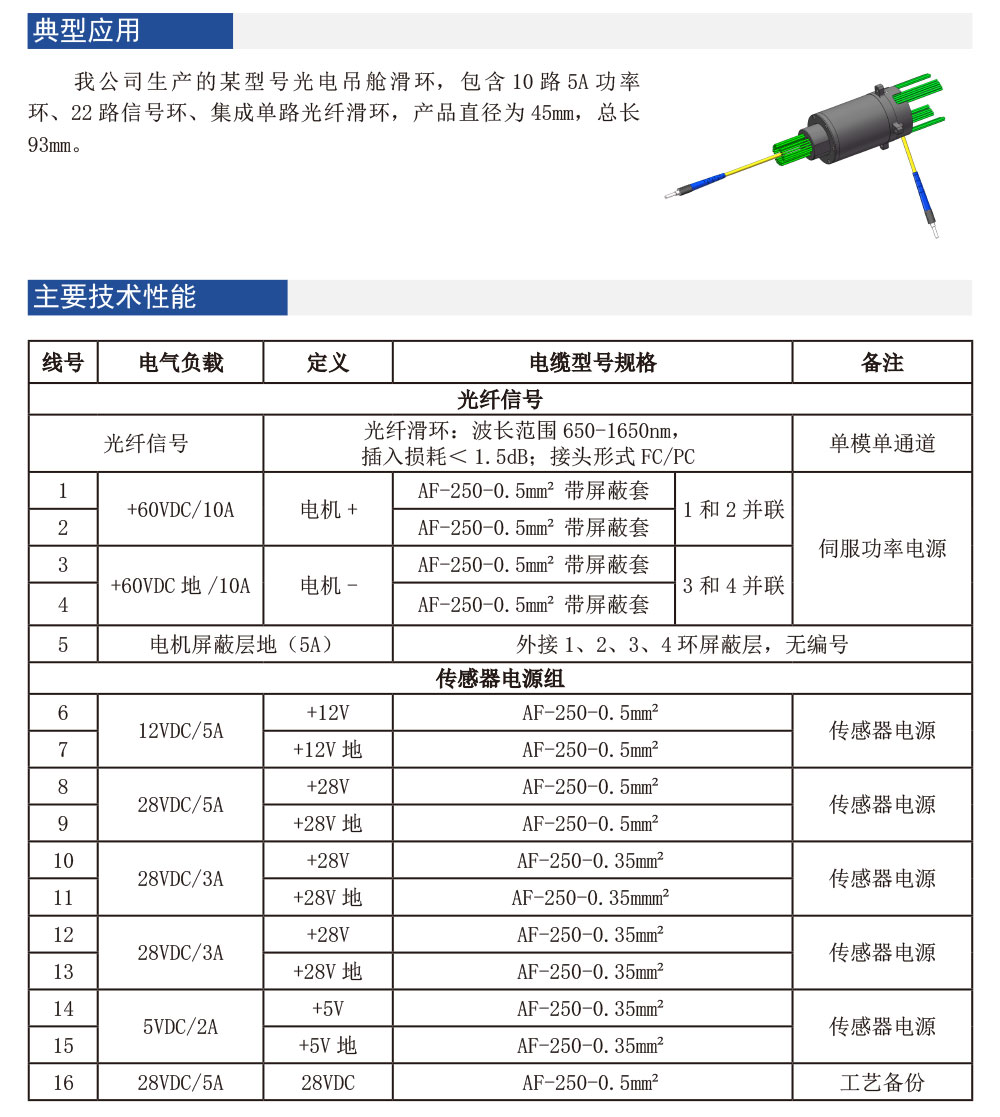 機載環境下的滑環多用于光電吊艙、直升機旋翼等系統中,該類環境通常對滑環產品提出輕量化、小型化的要求,產品設計較為緊湊,需要針對低氣壓下的絕緣性能下降做特別設計。